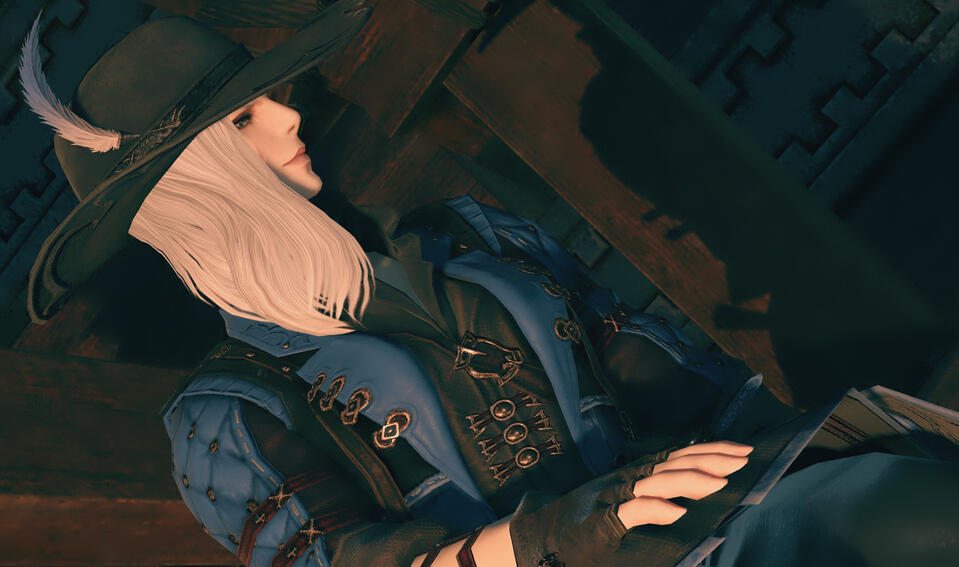 What if before Urianger had left to Eorzea, he met with Moenbryda in secret to form an eternal spirit bond with each other. From this bond, they would know if the other was healthy and hale. If they were in danger, they alone had one chance to change the fate of their significant other.It was thanks to this bond Moenbryda managed to miraculously survive the otherwise fatal injury Nabriales dealt her. With it however, came a consequence.Though Urianger and the churgeons were able to help heal her injuries, Moenbryda did not wake from her comatose-like slumber. No amount of spells and incantations willed her eyes to open. It wasn't until further research on the spell revealed her soul was trapped between realms: The Aetherial Sea and the Living World. Not quite living, not quite dead.Although crestfallen on this new developement, the Scions carried onwards in their pursuit of weakening the Ascians, creating a united Eorsea, and in its wake, find a cure for Moenbryda.In that time, Moenbryda slumbered for several months in a stage of limbo. Unable to go back or forward. Stuck to do nothing but faintly hear those around her speak of what tales have transpired.It wasn't until the closing of Doman relations with the Garleans that her body had been pulled by a voice. It called with such a vengeance, her soul had been fully ripped from her body. No longer trapped in an endless purgatory.When her eyes finally cracked open after what felt like eons, it was to see the flittering of purple leaves, and eerily somber light all around her.She had been transported to the first, three years before Thancred appears.In that time abroad in The First, Moenbryda dedicated herself to the cause and enlisted herself to be on the frontlines with Lyna. With it she stuck close to the Crystarium to study any of useful tomes for further aerheric research and the light wardens.It was only when the times were getting truly dire, she set off on her own to take matters into her own hands, which was right around the time Thancred appears.